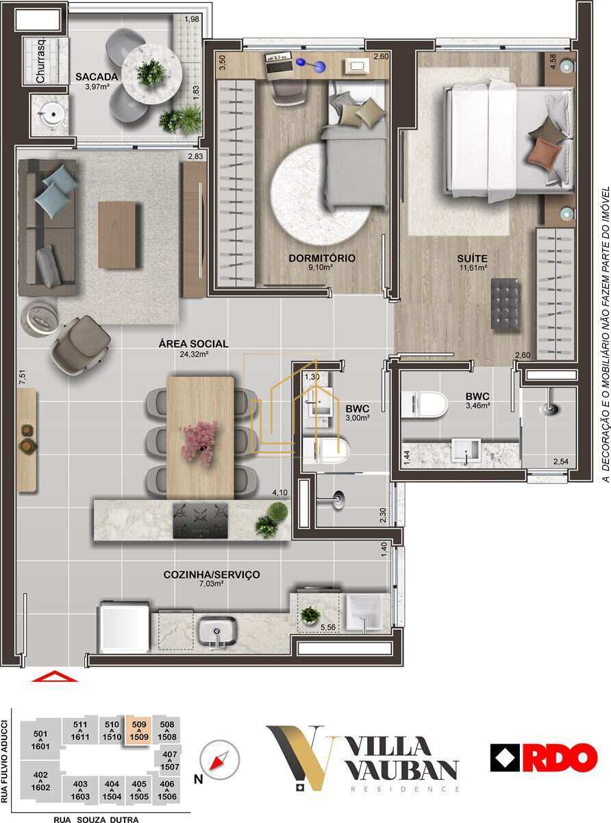 2 dormitórios, com opções de 1 ou 2 suítes.